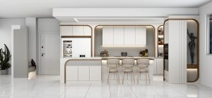 رنگ سفید همچنان با اختلاف پرطرفدارترین رنگ در میان سلیقه کارفرماهاست؛ در این پروژه از رنگ تمام سفید برای دیزاین این آشپزخانه استفاده کردیم تا نتیجه ای چشم نواز برای کارفرما خلق کنیم.