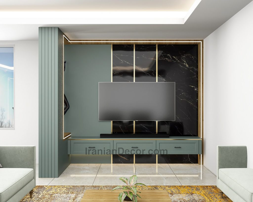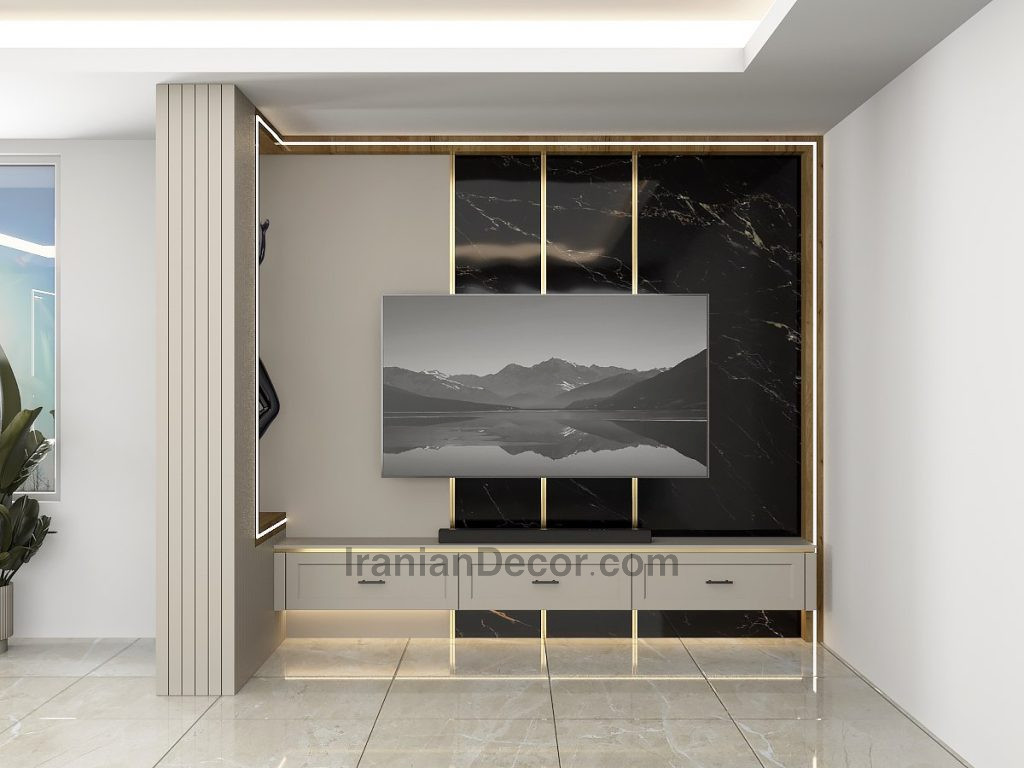 طراحی برای دکور تی وی وال با کاورکردن ستون های مزاحمدر دو رنگ مختلف