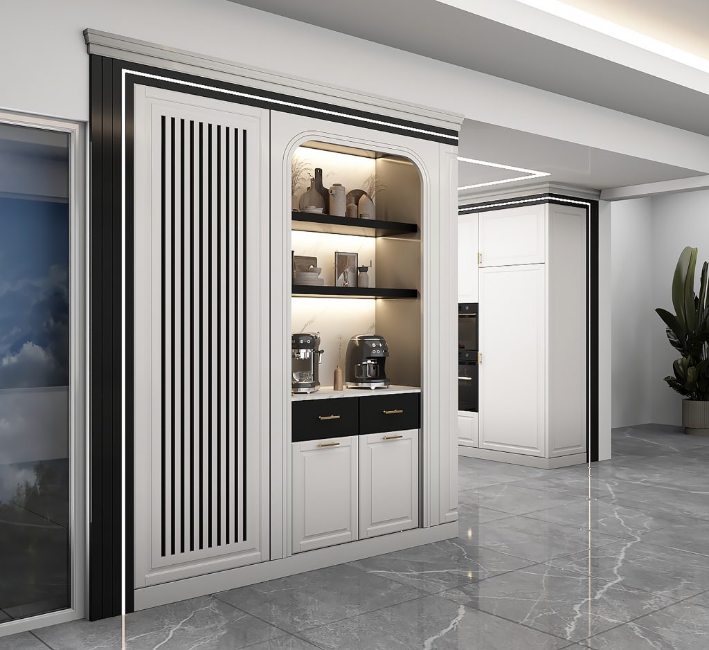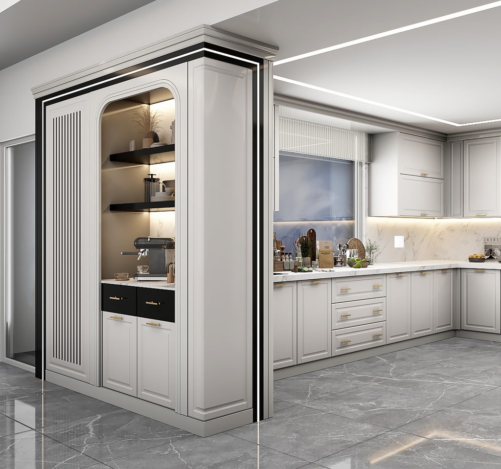 طراحی و اجرای کابینت ها و کافی بار پیوسته با سبک نئوکلاسیک